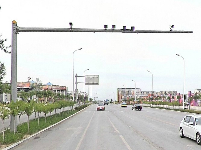 道路監(jiān)控桿也稱監(jiān)控桿與監(jiān)控立桿,立桿要求攝像機(jī)離地面高度一般不低于5米,挑臂長度3~5米,立桿下端管徑應(yīng)在220 mm±10mm、上端管徑應(yīng)在120 mm±5mm,管壁厚度應(yīng)≥6mm,表面防腐、抗臺風(fēng)。立桿基礎(chǔ)深度不低于1.5米,基礎(chǔ)直徑大于1米,采用混凝土灌筑,以確保立桿的牢固度。